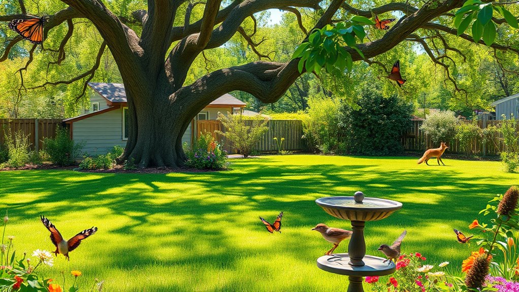 If you want to attract specific wildlife, choose native plant species suited for wildlife friendly landscaping. For butterflies, plant milkweed and goldenrod; for hummingbirds, add bee balm and salvia; and for pollinators, include wildflowers like coneflowers. Many worry about planting the wrong species, but focusing on native plant selection guarantees your yard becomes a thriving habitat that supports the animals you want to see.