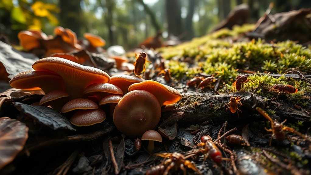 In the quiet corners of extreme environments, decomposers find ways to persist, adapting to harsh conditions. You might think they’re fragile, but many fungi, bacteria, and detritivores develop remarkable resilience, thriving where others cannot. They survive in scorching deserts, freezing polar regions, and acidic or polluted waters. Their ability to adapt guarantees their essential role continues, maintaining nutrient cycles and ecosystem health even in the harshest places on Earth.