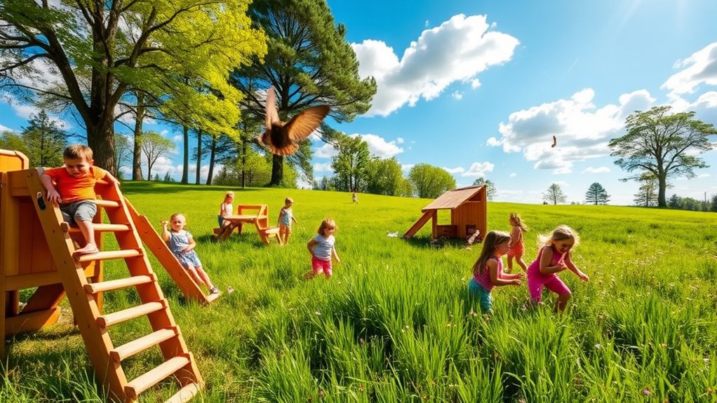 Have you ever wondered how outdoor play in natural settings strengthens children’s immune systems? When kids spend extensive time outside, they’re exposed to diverse microbes, which helps their bodies build robust defenses. This exposure can reduce the risk of allergies and asthma by promoting a healthy immune response. Fresh air and sunlight boost vitamin D levels, essential for immune health and fighting off illnesses. Active outdoor play also encourages physical activity, supporting overall health and resilience. Additionally, being in nature reduces stress hormones, which can weaken immune function if chronically elevated. As children explore natural environments, they develop stronger immune responses, making them less susceptible to infections. Overall, outdoor preschool environments serve as natural immune boosters, supporting children’s physical health and helping them grow stronger every day.
