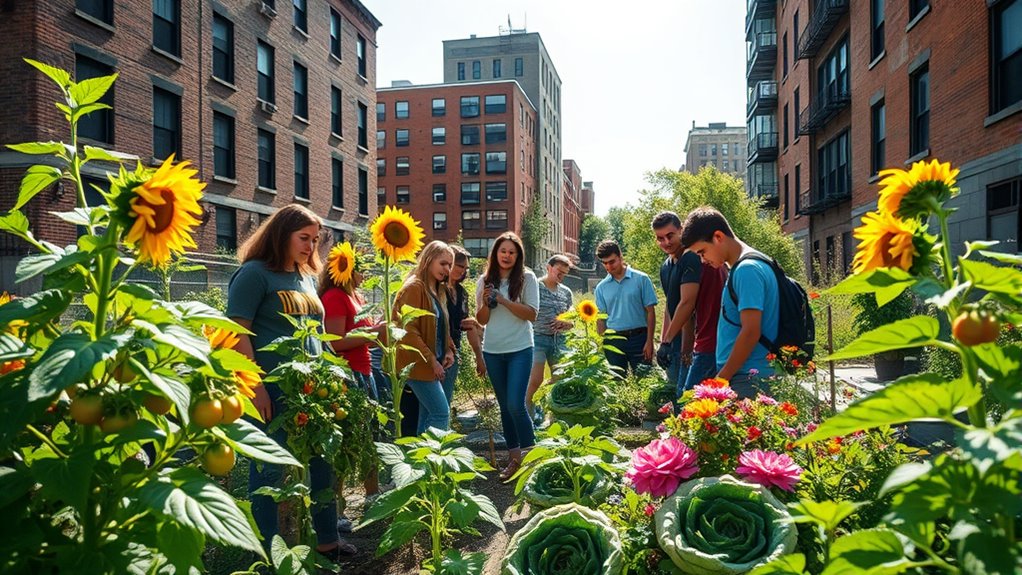 Urban teens transforming vacant lots into vibrant gardens prove how green spaces boost neighborhood safety, mental health, and community pride. These projects reduce crime rates, increase property values, and provide fresh food options, helping fight food insecurity. The efforts foster responsibility, resilience, and stronger bonds among residents. If you’re curious about how these green transformations create lasting change and inspire communities, there’s more to discover below.