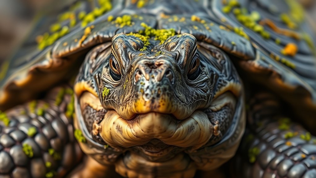 You might marvel at their muted, mysterious methods of communication. Alligator snapping turtles primarily communicate through subtle sounds, body language, and tactile interactions. You’ll notice head buffs, shell bumps, or gentle nudges during social encounters. These movements and murmurs help them establish dominance, define territory, or attract mates. Although they’re mostly solitary, understanding their signals reveals their silent social skills, showcasing nature’s nuanced, nonverbal language in their aquatic, age-old arena.
