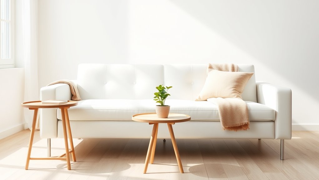 Additionally, incorporating natural materials into your living space can further improve energy efficiency by enhancing insulation and reducing reliance on mechanical heating and cooling systems. Using energy-efficient appliances also helps minimize overall energy consumption, making your home even more environmentally friendly. Choosing compact, multi-purpose furniture can optimize space and reduce the need for excess heating or cooling in unused areas. Embracing space-saving design strategies can maximize comfort while minimizing energy use. Considering passive solar design can also significantly decrease the need for active heating and cooling, further reducing your carbon footprint.