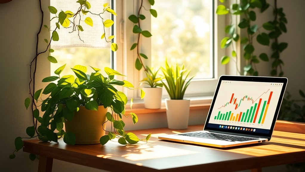 Environmental impact factors are essential because they directly influence the long-term viability and stability of your investments. When you consider how companies manage resources, emissions, and ecological risks, you get a clearer picture of their resilience and future prospects. Poor environmental practices can lead to fines, regulatory penalties, or reputation damage, which hurt financial performance. Conversely, businesses that prioritize sustainability often innovate and reduce costs through efficiency, boosting profitability. By integrating environmental factors into your decision-making, you support companies committed to reducing carbon footprints and protecting natural resources. This not only aligns your portfolio with global sustainability goals but also minimizes exposure to environmental risks that could threaten your returns. Understanding ethical hacking and its role in security can help you recognize how companies protect their data and assets from cyber threats, further informing your investment choices. Additionally, corporate sustainability strategies play a crucial role in shaping a company’s long-term success and resilience. In essence, understanding environmental impact helps you make smarter, more responsible investment choices.
