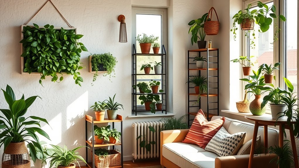 Have you considered how installing smart thermostats can considerably enhance your apartment’s energy efficiency? These devices allow you to control your heating and cooling remotely, adjusting the temperature when you’re away or asleep. With learning capabilities, smart thermostats optimize settings based on your habits, reducing unnecessary energy use. They help prevent energy waste by automatically lowering heat or AC during unoccupied times, which cuts utility bills and minimizes environmental impact. Additionally, real-time energy consumption data enables you to make informed decisions about your usage. Easy to install and use, smart thermostats integrate seamlessly with your existing Wi-Fi setup. By implementing this technology, you contribute to a more sustainable lifestyle and enjoy long-term savings while reducing your apartment’s carbon footprint. Incorporating energy management techniques like this not only enhances comfort but also supports your efforts toward sustainable living. Engaging with smart home technology can further optimize your energy savings and convenience. Furthermore, utilizing efficient heating and cooling systems can amplify these benefits and create a more eco-friendly living environment. Embracing innovative solutions such as smart thermostats can lead to significant improvements in your energy consumption patterns. For example, some models can be integrated with self-watering plant pots to create a fully automated and eco-friendly apartment environment.