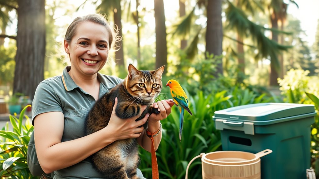 By making eco-friendly choices, you can markedly reduce your pet’s carbon pawprint—did you know that pet ownership accounts for up to 21% of household greenhouse gas emissions? Switching to sustainable food, toys, and habitats not only benefits the planet but also keeps your furry and feathered friends healthier. Every small step counts, so embrace these tips and become a truly eco-conscious pet parent for a greener, happier future.