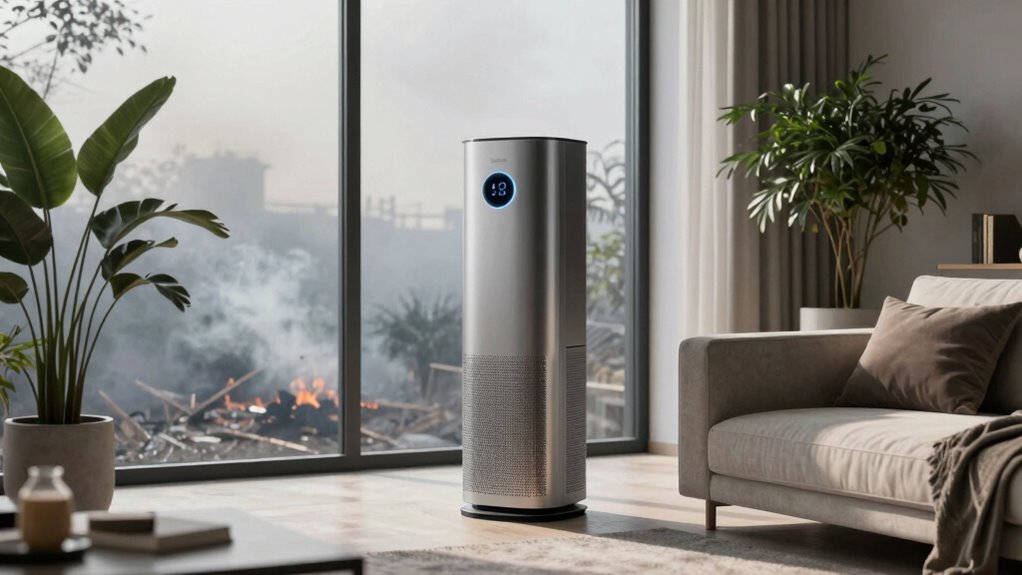 Think of ultrafine wildfire smoke particles as tiny ninjas slipping through regular filters. HEPA filters are the best at catching these stealthy foes because they can trap particles as small as 0.3 microns, including ultrafine particles. Activated carbon filters also help by absorbing gases and odors. For the most effective protection, look for air purifiers combining HEPA and activated carbon technology—they’re like a double shield against wildfire smoke.