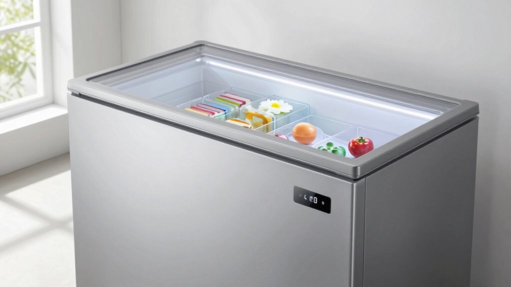 To maximize energy efficiency in your chest freezer, I suggest giving it a little TLC—clean the coils regularly, keep the door sealed tight, and avoid overloading it. Think of it as a spa day for your freezer. When it’s well-maintained, it doesn’t have to work as hard, which saves energy and your money. Trust me, your wallet and the environment will thank you!