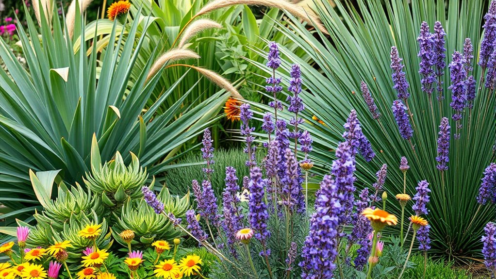 Choosing deer-resistant plants that will thrive in your garden starts with selecting varieties compatible with your climate. I always check that the plant’s hardiness zone matches my local conditions, since deer-resistant plants are often zone-specific. It’s vital to choose plants suited to your area’s temperature range—whether hot, cold, or moderate—to ensure they survive and resist deer browsing. I also pay attention to moisture levels; in dry regions, drought-tolerant plants work best, while wetter areas benefit from water-loving varieties. Matching the plant’s native habitat preferences with my soil type and exposure—full sun, partial shade, or full shade—is essential. Keep in mind, regional deer habits vary, so what’s resistant here might not be the same elsewhere.