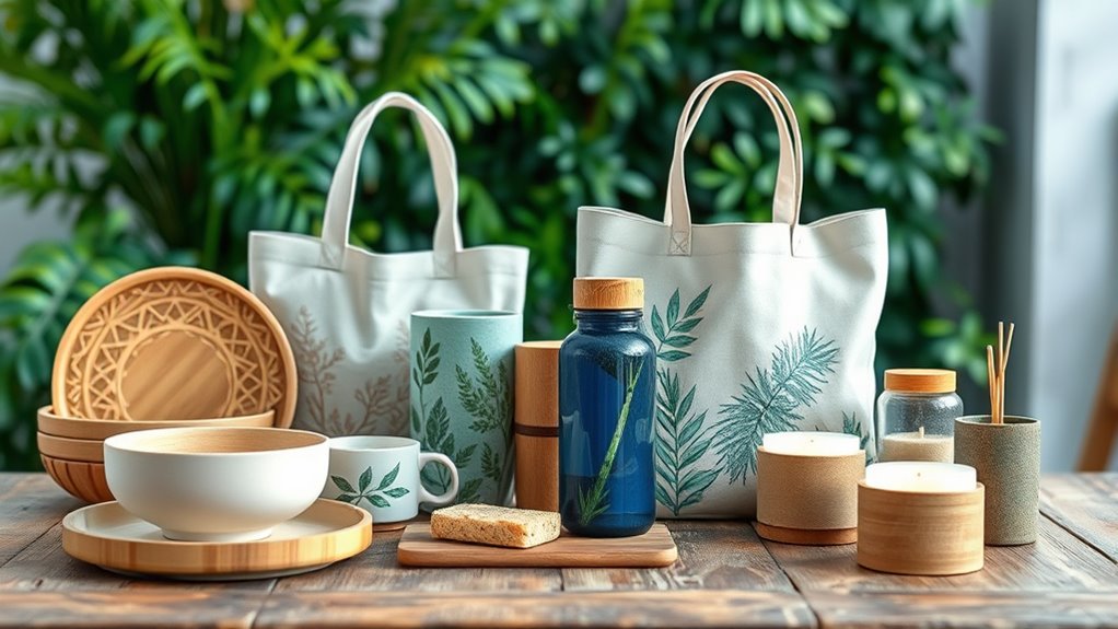 Eco-friendly gifts reduce environmental impact by using sustainable materials, minimizing waste, and supporting eco-conscious production methods. I choose gifts made from recycled or renewable resources, which helps lower pollution and conserve resources. When I give these gifts, I encourage responsible consumption and reduce my carbon footprint. It’s a simple way to make a positive difference, showing that caring for the planet can be stylish and thoughtful at the same time.