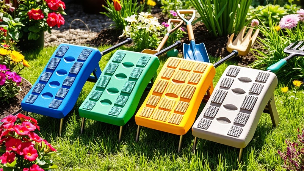 If you’re looking for the 14 best ergonomic garden kneelers, I can help you find options that combine comfort, support, and durability. From adjustable features and wide cushions to foldable designs with storage, these kneelers are designed to make gardening easier and safer. They support various needs, including seniors or those with joint issues, and are built to withstand outdoor conditions. Keep exploring—you’ll discover detailed insights to choose the perfect garden kneeler for you.