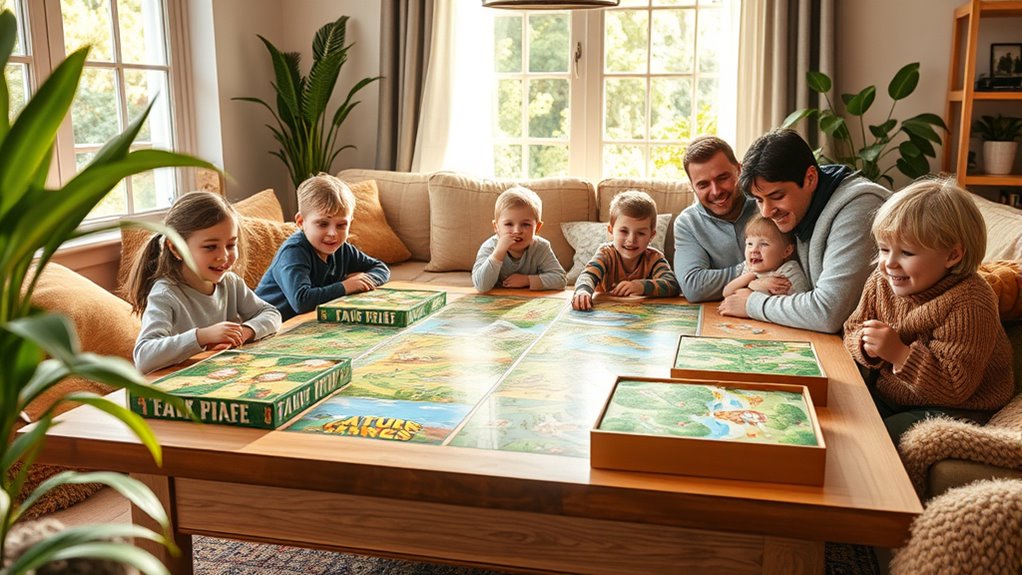 Choosing a family nature board game hinges considerably on how players interact during gameplay. I look for games that promote teamwork, communication, and shared decision-making, which reinforce social bonds. Cooperative games, where everyone works together toward common goals, encourage collaboration and problem-solving, making the experience more engaging. On the other hand, competitive elements like racing or scoring motivate players to strategize and stay focused. The level of direct engagement—such as trading, negotiation, or blocking—also shapes the game’s social dynamic and excitement. It’s important to find a game that balances interaction with accessibility, so all family members, regardless of age or skill level, can participate actively. This balance ensures everyone stays involved and enjoys the shared outdoor-inspired experience indoors.