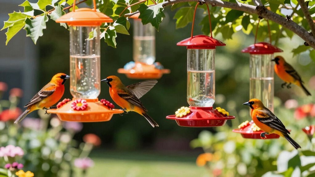 Absolutely, you can use multiple oriole feeders at once without much fuss. I’ve found that spreading them out a bit helps prevent any silent competitions and keeps the birds happy. By giving each feeder its own space, oriels can feed peacefully without feeling crowded. Plus, a variety of feeders can attract different oriole personalities, making your backyard a lively, colorful haven. It’s a simple trick that works wonders!