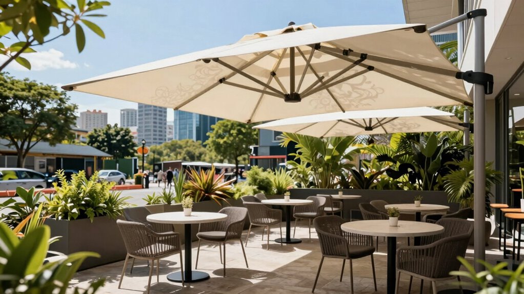 Choosing the right commercial patio umbrella is like finding the perfect embrace on a sunny day—it turns your outdoor space into a sanctuary. With options spanning from tilting mechanisms to UV protection, you can craft a shaded haven tailored to your needs. Don’t settle for a mere shelter—think of your umbrella as the heartbeat of your outdoor oasis, bringing comfort and style together in a dance that welcomes everyone to relax and enjoy.