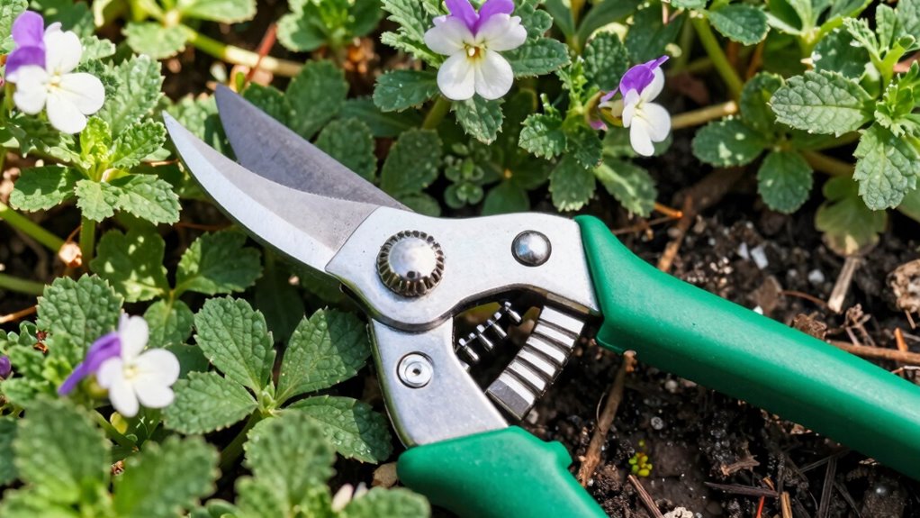 I sharpen my native garden pruners every few months, especially during peak pruning season. Think of it like tuning a guitar—regular sharpening keeps the blades singing smoothly. I’ve learned that dull pruners tear plants rather than cut cleanly, which can harm native species. To keep my tools in top shape, I inspect and sharpen them whenever I notice they’re not slicing as effortlessly, usually every 2-3 months.