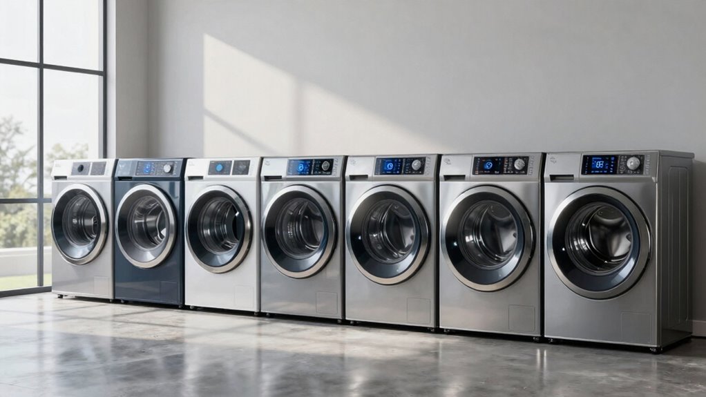 Ever wonder how the different wash cycles impact your laundry results? The variety of cycles, like Heavy Duty, Delicates, Whites, and Express, let you tailor cleaning based on fabric type and soil level. Multiple temperature options help remove stains effectively while protecting delicate fabrics. Many washers also offer customizable cycles with features like extra rinse and steam cleaning, boosting cleaning power and fabric care. Fast cycles such as Accela Wash or Express Wash are perfect for small or lightly soiled loads when you’re in a hurry. Some models even include special cycles for sensitive skin, utilizing extra rinses to reduce detergent residue. Choosing the right cycle guarantees cleaner clothes, better fabric preservation, and efficiency tailored to your laundry needs.